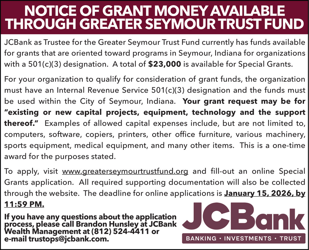 Notice of Grant Money Available Through Greater Seymour Trust Fund