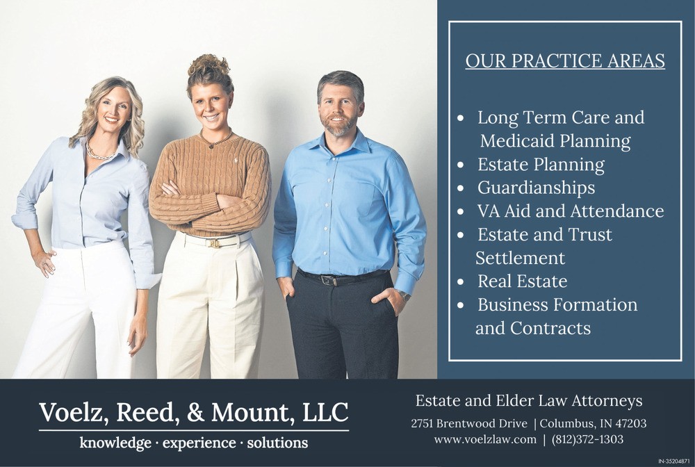 Jan 31, 2026. Voelz, Reed & Mount LLC Attorneys Ads from Seymour Tribune